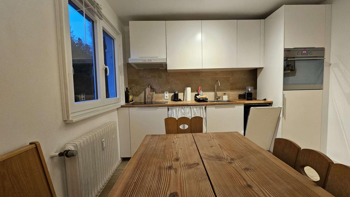 Der Grundriss ist klar gegliedert: ein separates Schlafzimmer, ein Wohnzimmer, eine großzügige Küche sowie ein Bad. Der ehemalige Balkon wurde zu einem geschützten Indoor-Balkon umgebaut und erweitert den Wohnbereich um eine ruhige Lese- oder Rückzugsecke mit Ausrichtung zum Wald.